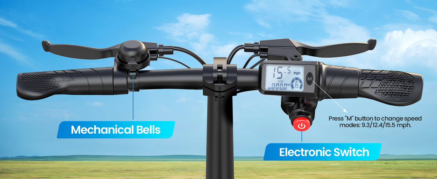 HD LED Display, Real-Time Information Control: The easy-to-read LED display provides information on speed, battery level, total mileage, and more. With three adjustable speed modes, you can monitor the scooter’s status during your ride, ensuring a safe journey every time