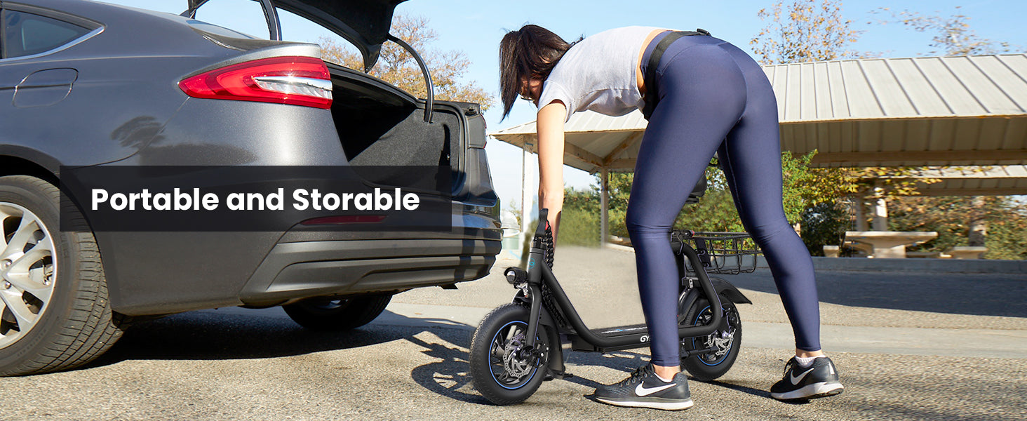 The size of C1 ebike electric scooter after folding is: 43.7x 9.8 x 21 inches
