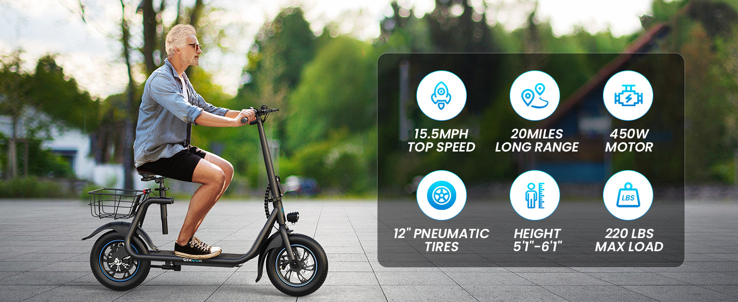 Gyroor C1 Electric Scooter – 450W, Seat & Rear Basket