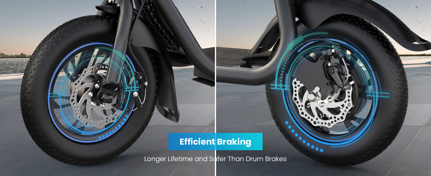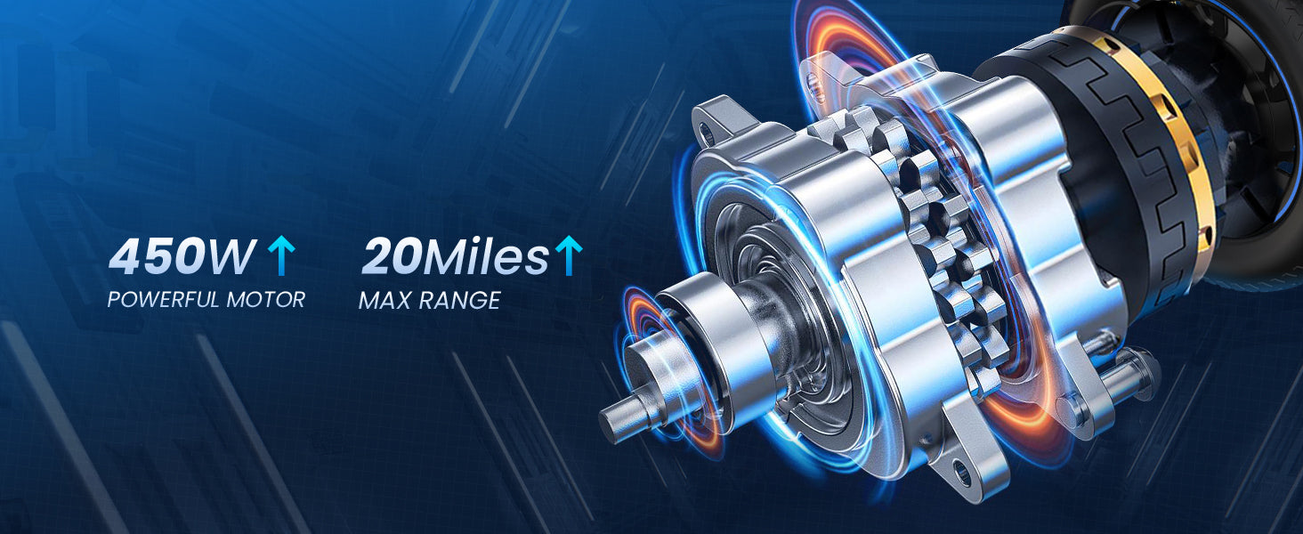 450W Silent Power System, Effortless Urban Commuting: Equipped with a 450W powerful motor, this scooter delivers robust performance while maintaining low noise levels, making it suitable for various urban roads. It easily handles 10-degree slopes, providing a smoother riding experience
