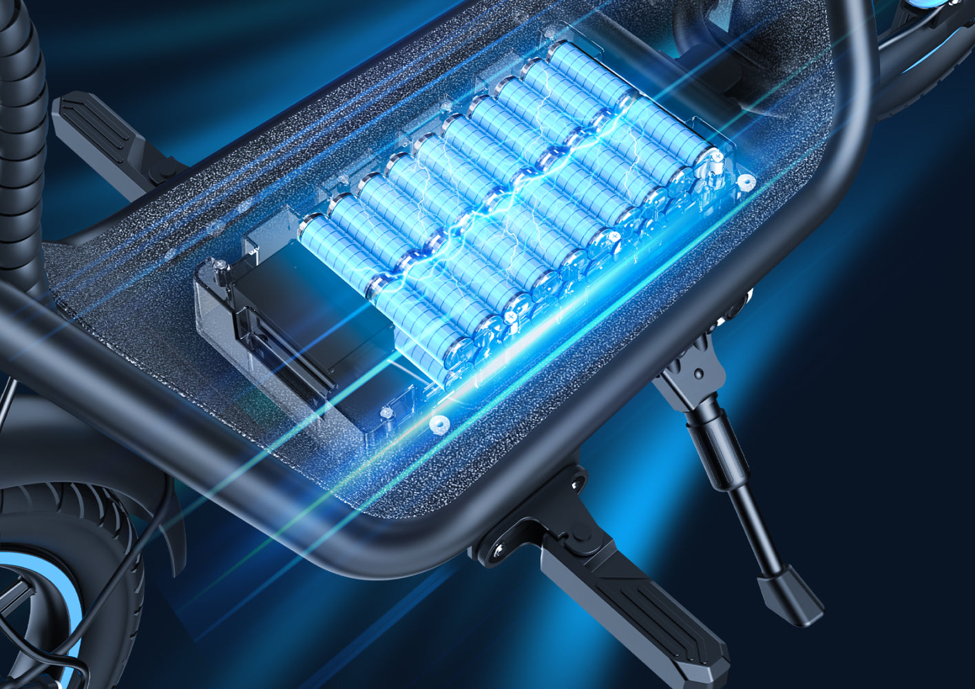 6061 Aluminum Alloy Frame; removable lithium-ion battery; rear rack and fenders included; kickstand mount;