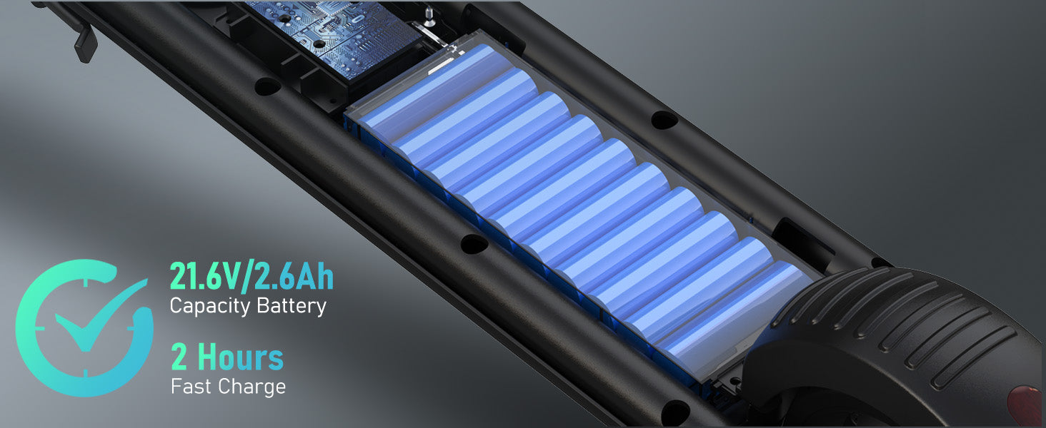 This C1 E-scooter for adults comes with high capacity 36V 7.5Ah lithium battery, max speed 15.6mph and max riding range 22miles. Solve the problem of short distance travel.