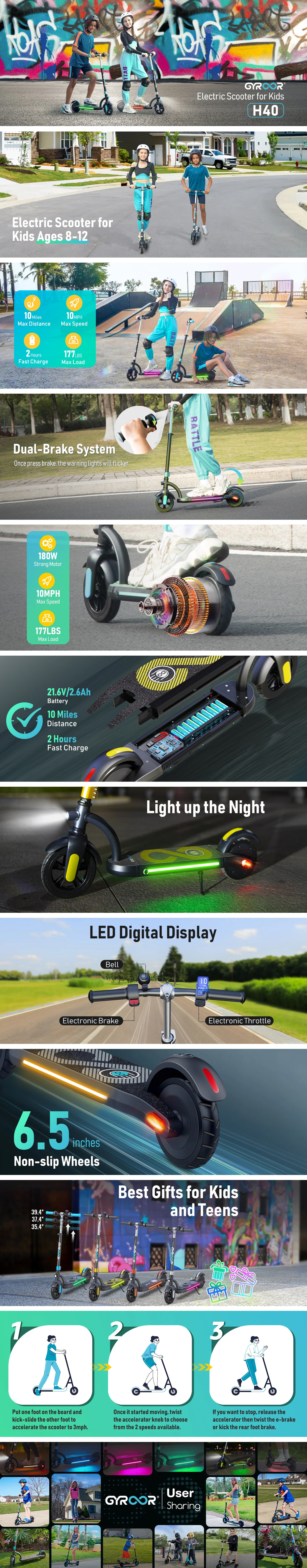 Gyroor H40 Electric Scooter For Kids and Teens Ages 8-14