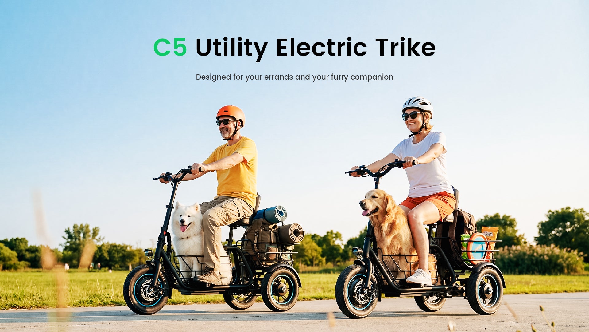 - C5 Electric Trike Powerful Rated 650W(Peak 1000W) Motor & Long-Lasting Battery: Experience strong acceleration and smooth climbs with a 650W brushless motor, ideal for urban commuting. The 48V 13.5Ah lithium battery delivers up to 30-35 miles per charge* (varies by load/terrain), reducing frequent recharging. (*Under optimal conditions)